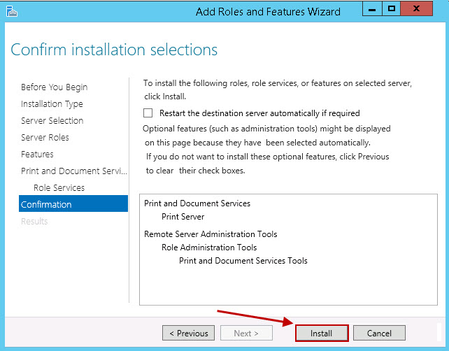 To use windows 2012 as a print server you need to install Print and Document Services. Here are the steps on how to install Print and Document Services on windows 2012 R2: